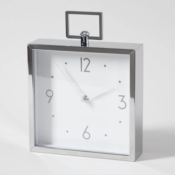 Featuring a contemporary design with a white face and a chrome finish, this stylish square mantel clock from the quality Hotel brand features large numerals which are easy to read.