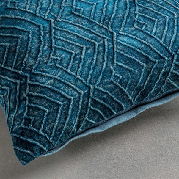 Introducing this lush, stonewashed cotton velvet cushion with an assortment of detailed designs creating a soft textured surface and a plain cotton reverse. Filled with a plump feather filling, this square shaped cushion is available in a range of rich colours to compliment your home décor.