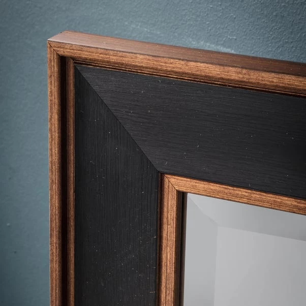 Stylish and straightforward, the Peoria Mirror has a simple rectangular shape with a black frame and copper accents for a trendy touch. This mirror is available in a range of sizes to suit your space.