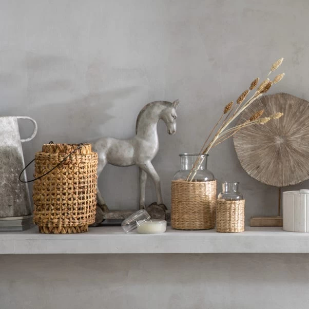 A stunning handwoven design, the Sutton Lantern is made from water hyacinth and features a glass inner, perfect for placing a candle and displaying on a shelf, mantle or table in your home.