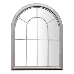 Reflect in nature with the simple, grand styles of the Trieste Outdoor Mirror featuring a window design in a painted grey finish frame. The arched top and bold shape adds a new dimension to any outdoor space.