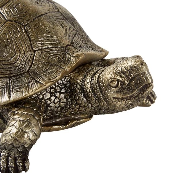 Add a unique and fun touch to any room with this multi-functional Luxe Traveller Tortoise Glasses Holder. Crafted with a gold resin finish and beautiful artistic details, the tortoise shell opens up so it can be used as a trinket box as well as a glasses holder, making it the perfect statement piece in any room.