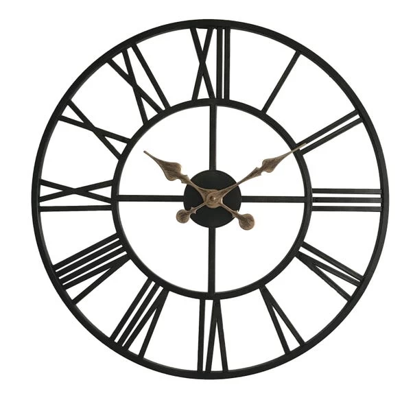 Featuring a stunning oversized vintage style Skeleton Wall Clock, perfect for adding a statement centrepiece to your living space. Designed with classical styled gold coloured hands with roman numeral figures in a stunning colourway finish. This contemporary circular shape clock is a practical timeless piece that will enhance any wall in your home and complement a range of home décors.