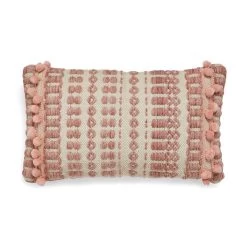 Fashioned from woven fabric and completed with textured detailing and lace pom pom edging, this stylish cushion is perfect for bringing a touch of texture and colour to your home. This cushion is completed with a plain reverse for added versatility and features a removable and machine washable cover for convenient care. Filled with plump and durable polyester for lasting fullness, this cushion provides maximum comfort when relaxing in your home and brings a stylish touch to any room.