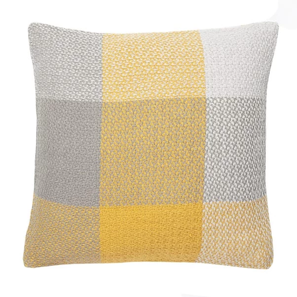 Woven with a stylish, wide checked design, this square cushion cover is crafted with 100% cotton, finished with contemporary ochre and soft grey tones.