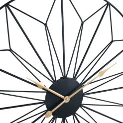 Combining decorative geometric design and practical clockwork together, the Black and Gold Geo Design Wall Clock showcases the elegant beauty of linework within this black metal frame. Featuring contrasting gold arrow styled hands and points to indicate the time instead of numeral figures, this wall clock demonstrates distinctive style and uniqueness to add a touch of contemporary style luxury to your home.