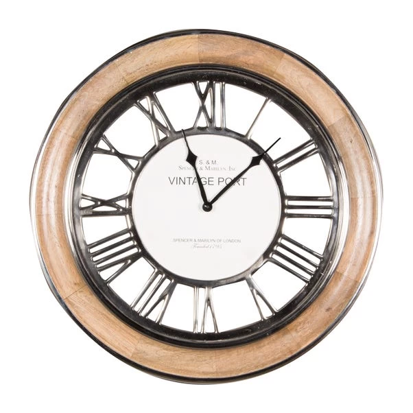 Pacific Lifestyle Polished Nickel & Mango Wood Round Wall Clock 58cm