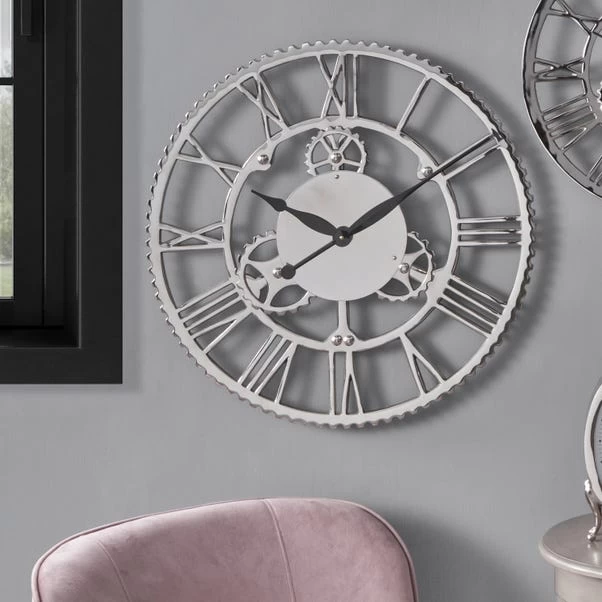 Pacific Lifestyle Shiny Nickel Cog Design Wall Clock 61cm