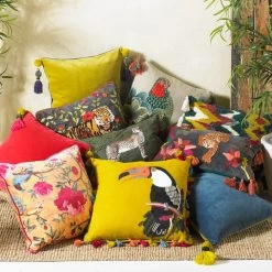 Styled with a Chinoiserie western inspired floral design, this beautiful gold cushion features bold fuchsia highlights and piped edge detailing for a sophisticated finish. The removable, machine washable cover is crafted from durable heavyweight polyester and does not stain easily, making this cushion ideal for homes with pets and young children. The plump polyester filling and soft velvet touch cover encourage comfort and relaxation, while the vibrant design adds a pop of colour to any room.