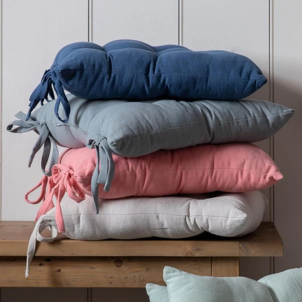 Update your tired and dull chairs with the Simply Cotton Plain Seat Pads with an elegantly styled 9 pin-tuck design. Made from woven cotton and filled with durable polyester filling, this seat pad will be sure to provide you with a plump and comfortable seat. Tie fastenings ensure these seat pads will stay securely attached to your chair while the neutral colour options and simple plain design creates a delightful appearance.