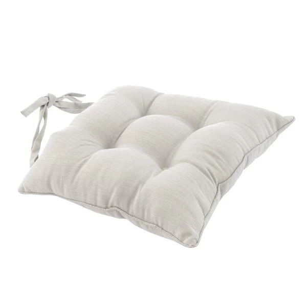 Available in a range of colours, this square seat pad is part of our Solar collection and has been designed in a natural biscuit colourway. Polyester filled for added comfort, this square seat pad features piped edging for added style with four button stitches and secure fabric ties to tie around chair backs.
